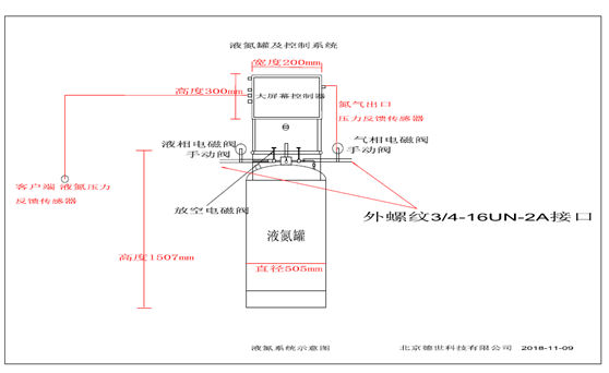 液氮罐補(bǔ)液控制系統(tǒng)由液氮補(bǔ)液罐、低溫智能化控制系統(tǒng)、閥門組件控制電磁閥和真空比例閥箱、PLC編程器、智能化控制人機(jī)交互控制終端、不間斷電源、溫度及壓力傳感器監(jiān)控探頭系統(tǒng)及反饋電路系統(tǒng)組成,功能可根據(jù)客戶需求,定制相關(guān)罐體自動增壓-出液-排氣的壓力及流量控制程序。