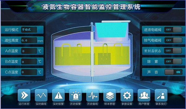 1、液氮罐監(jiān)控:實時采集低位、高位溫度,檢測液位高度;根據(jù)液位值和溫度值自動開關(guān)進液電磁閥;發(fā)送報警信息。